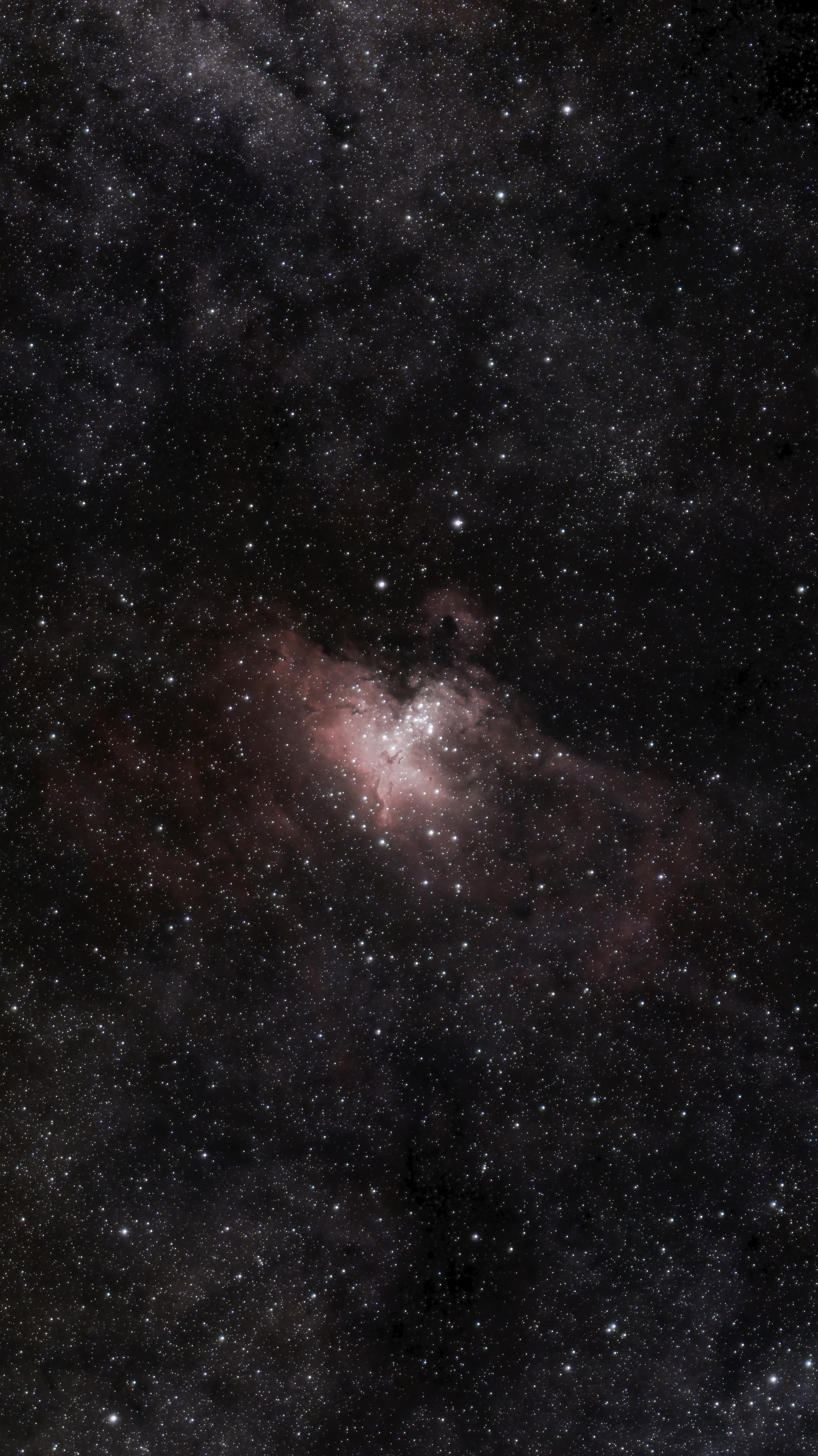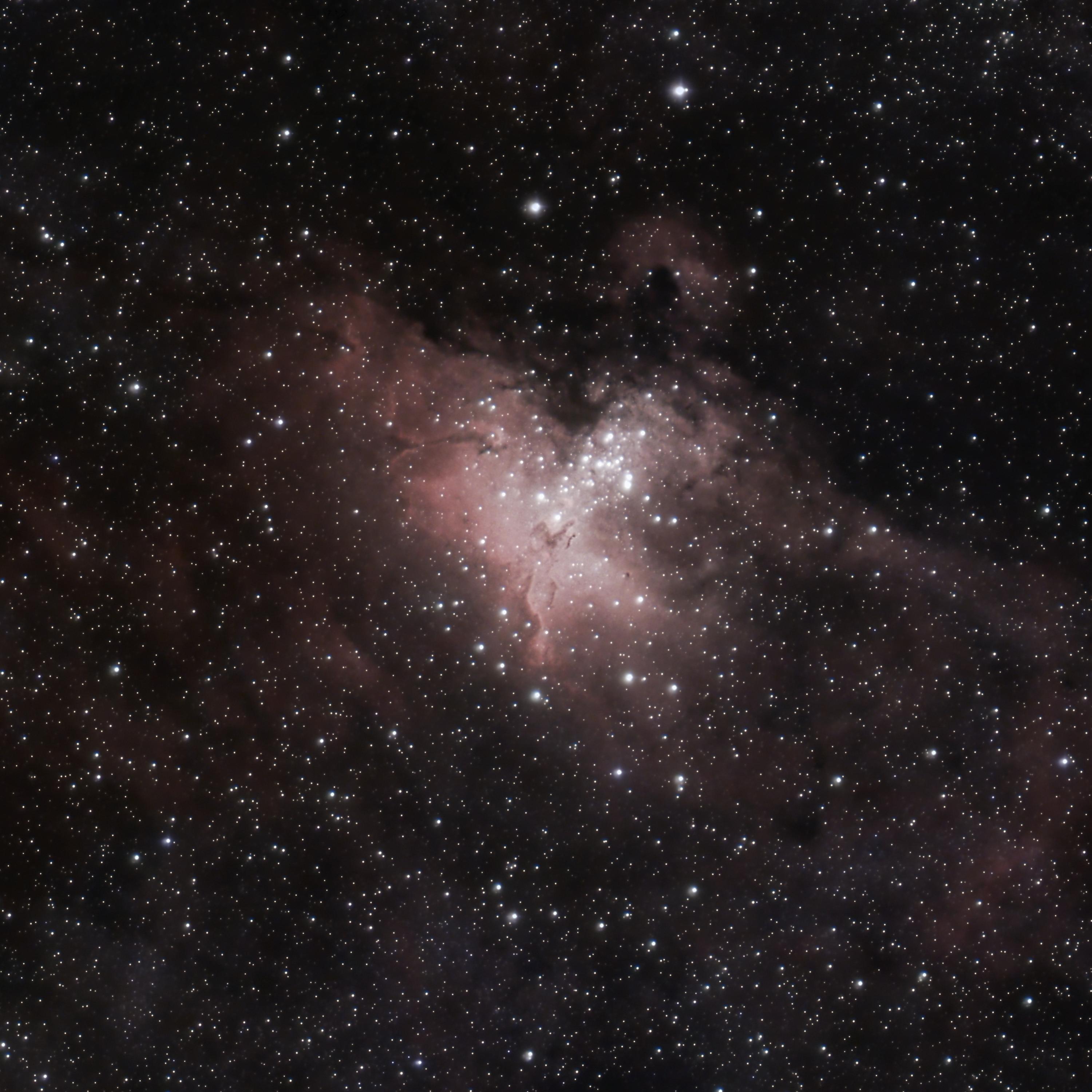 Bohužel se zpracováním nejsem osobně spokojen, částečně za to může blbě pořízení a zvolení špatné délky expozice, hlavní pilíř s pozadím je přesvícen a proto splývá. Hvězdy v blízkosti taky tomu moc nepomohly a jsou také přeexponované a blbě zaostřené. Osobně v processingu jsem s nima bojoval a nepovedlo se mi z toho vytvořit nič pěkného. Stacking probíhal klasicky vDSS a zpracování v PixInsight. Starless fotka opět přes Starnet.